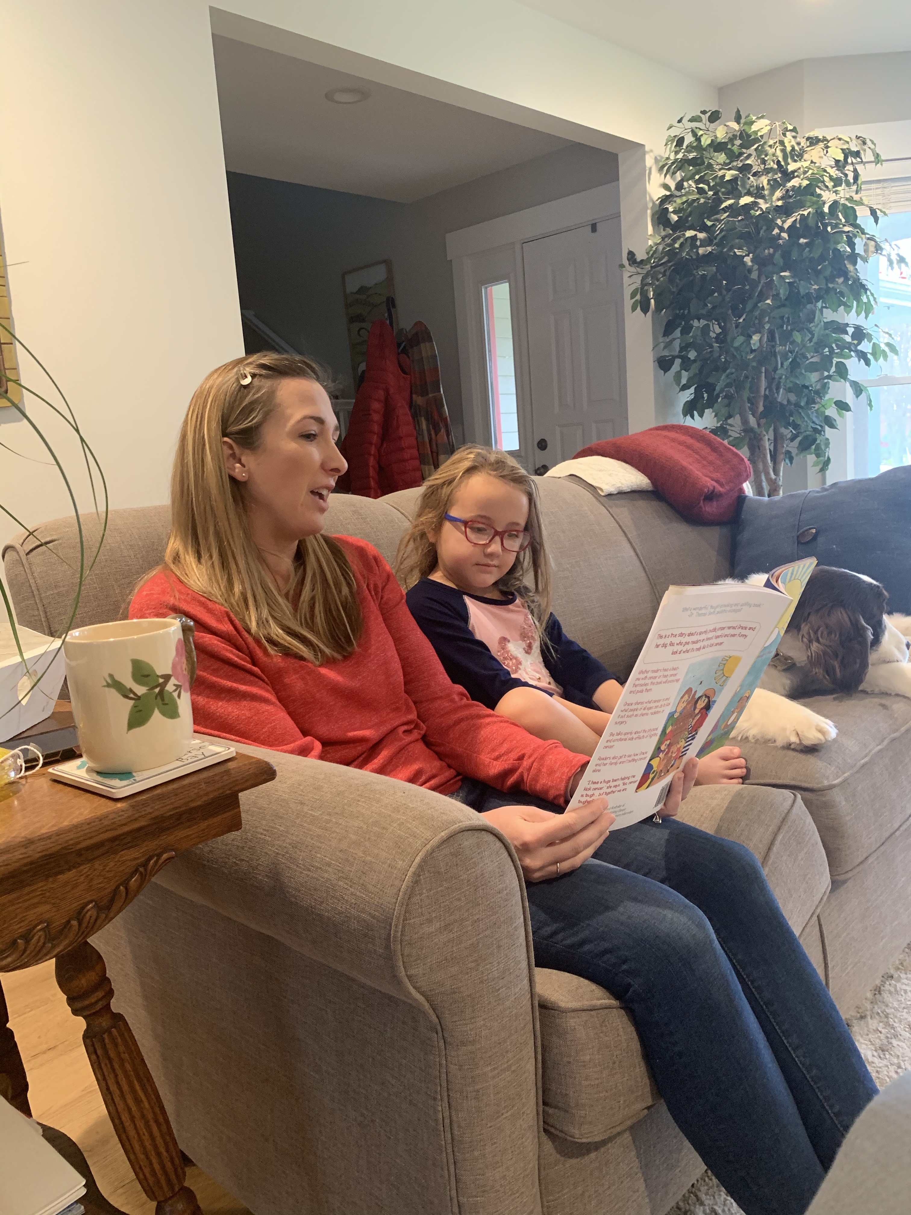 One of the things that I’ve been struggling with is her physical appearance from the steroids. Her cheeks and belly are quite puffy. We knew she’d gain some weight, but she just doesn’t look the same to me right now. I’m getting used to it but it’s hard to see your child charge so drastically so fast! Another thing we are dreading is the probable hair loss from the chemo. We have been avoiding telling her for so many reasons but finally mustered up the courage and did it yesterday. We have a children’s book that helped us get through it without crying, mostly. She was of course sad, but she handled it much better than we anticipated.