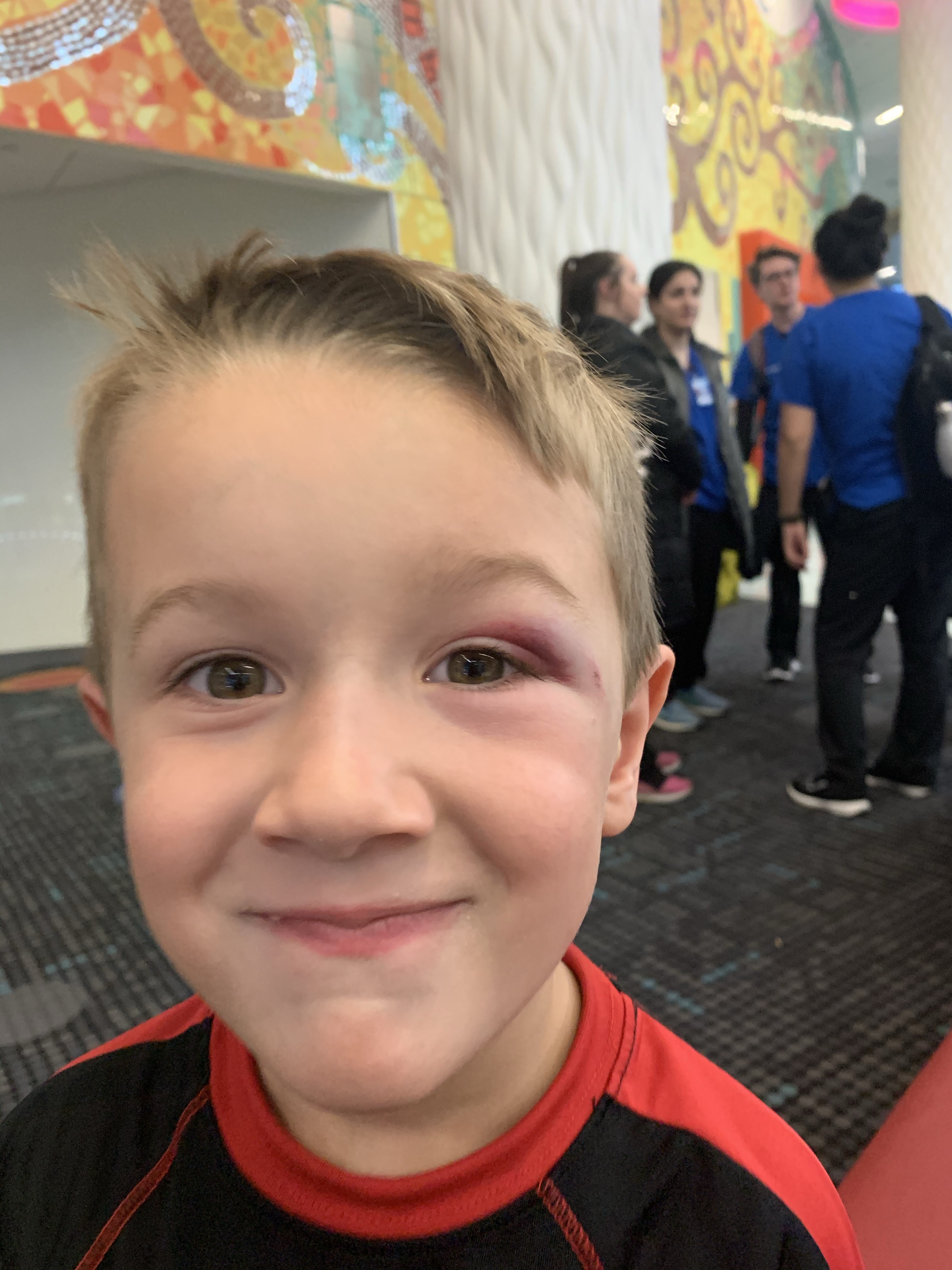 On a side note, Parker used the couch as a trampoline this week and landed head first on the side table which scored him an impressive black eye. =/