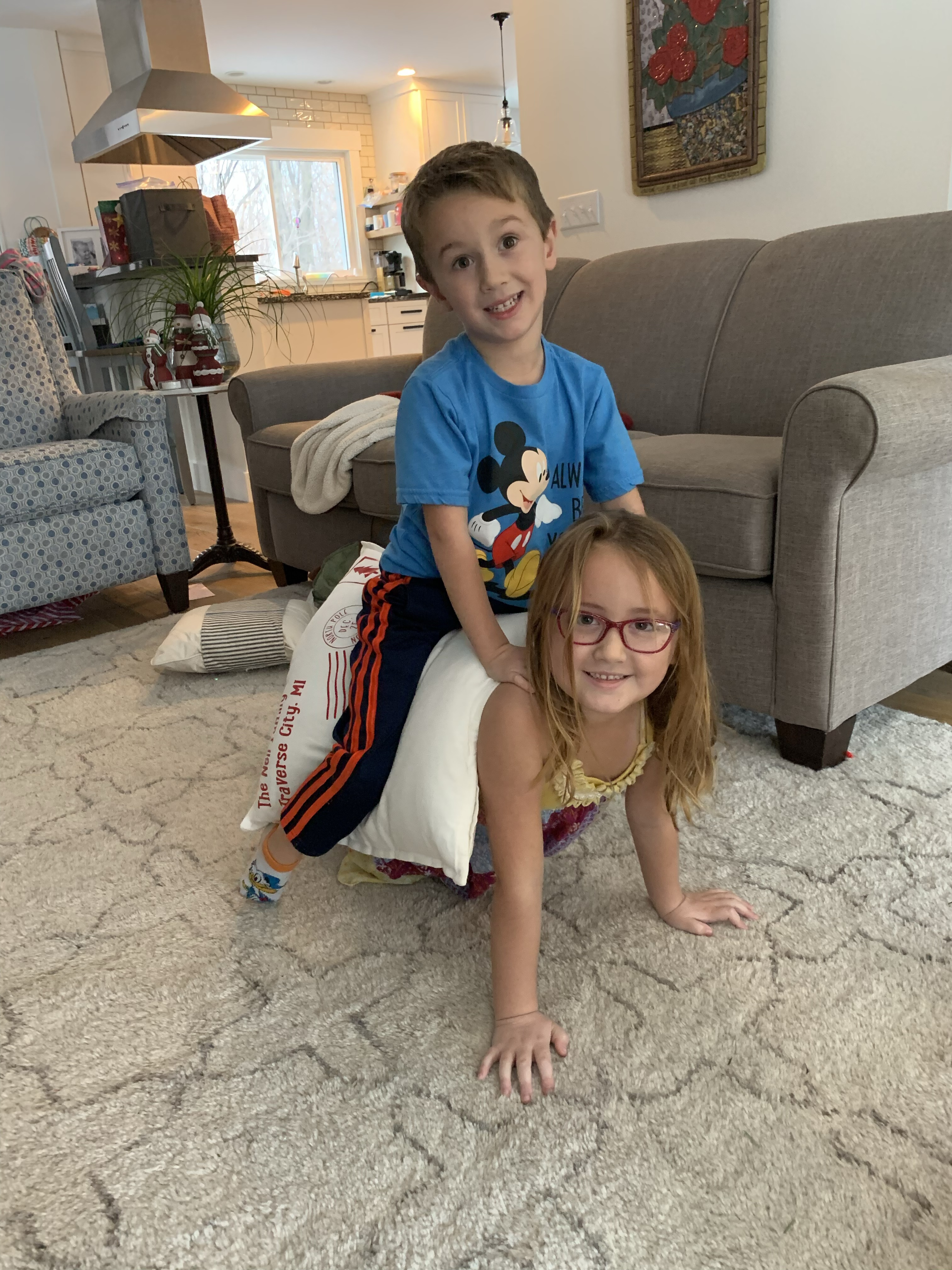 Madelyn has lost some of her steroid weight and can now zip up her snow pants. This girl has gone through so many changes in just 7 weeks. Our current month of meds do occasionally make her nauseous in the mornings and she’s gotten sick a few times. However it seems short lived and she’s able to move on fairly quick. One of the biggest joys for Brad and I are seeing her and Parker play again. A) it gives us a break from board games 🤪 but B) they were best buds before this and use to play together all the time.